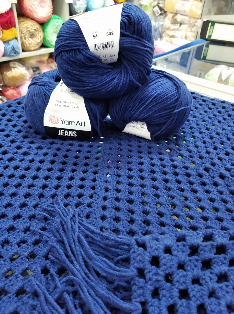 Джинс вяжется легко, нить пружинит, хорошо ложится и держит форму.Не растягивается, не линяет.